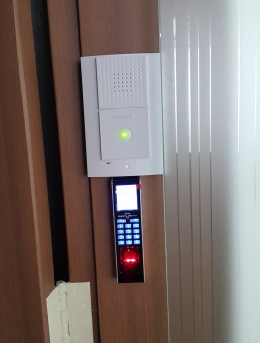 지문인식기 키스위치 기능을 사용하여 무선퇴실버튼 컨트롤 가능, 무선리모컨을 사용하지않을 때를 대비해 안쪽에 퇴실버튼 추가 설치 -
