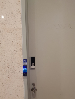 강화유리문 (데드볼트 시공) / 강화유리문 상단 프레임에 매립하여 설치단말기ACE-93TK설치개소2개소일자2018-02-06장소인천시 남구목적강화유리문 (데드볼트 시공) / 강화유리문 상단 프레임에 매립하여 설치 -